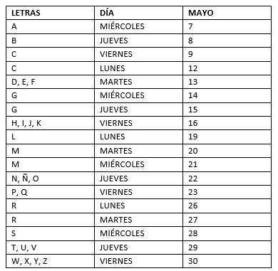 Para brindar mejor atención, el depósito bancario se realiza de acuerdo con la letra del primer apellido del derechohabiente, bajo el siguiente calendario: