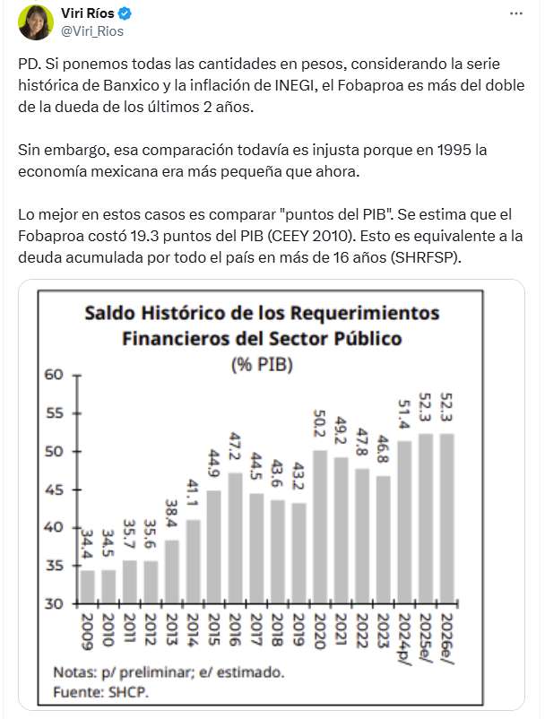 Comparando el Fobaproa con la deuda actual, equivale a los emprésitos solicitados los últimos 16 años y aún faltan 25 años para que se termine de liquidar