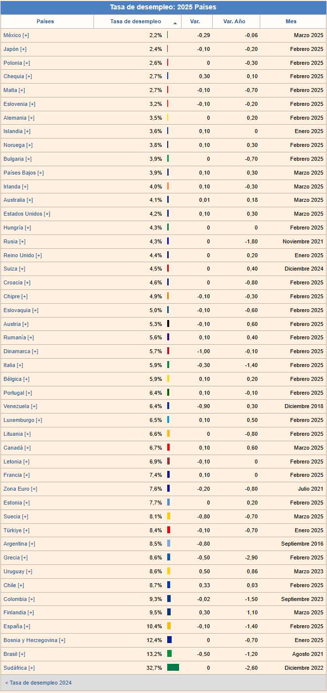 Vuelve a tener México la tasa de desempleo más baja del mundo este 2025